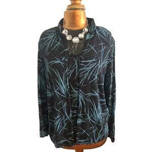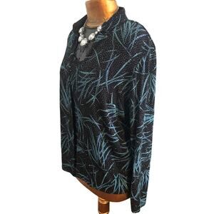 Onyx Nite 2-Piece Black Blue Turquoise & Shimmery Silver Top & Jacket Set Sz L