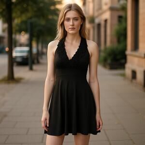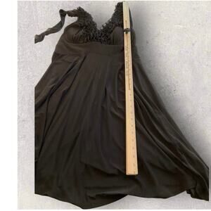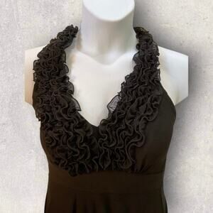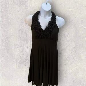 Onyx Nite Black Cocktail Dress 10 Halter Ruffle Front Tie Back Sleeveless Party