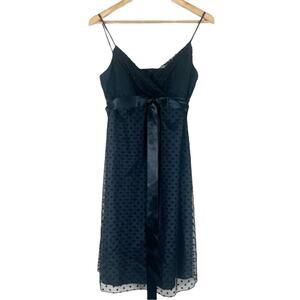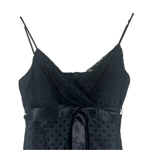 Onyx Nite Black Polka Dot Satin Cocktail Dress Size 8 V-Neck Coquette Whimsigoth