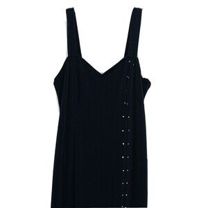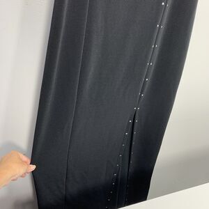 Stunning classic long front slit dress. Truly versatile. Material is super flattering and very forgiving. Cascading full length diamonds. All intact.