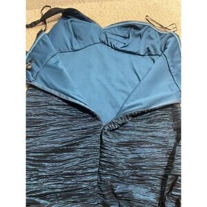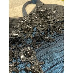 Onyx Nite Dress Sz 14 One Shoulder Embroidered Ruched Mini Black Blue Formal