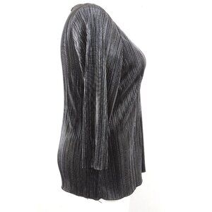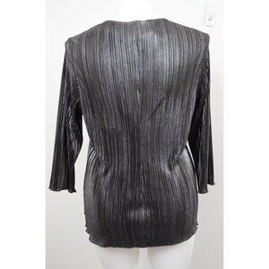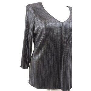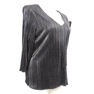 This Onyx Nite blouse is perfect for holiday festivities. It features a shimmery gunmetal metallic finish, adding elegance to any formal occasion. New with tags, this top ensures both style and comfort for plus-size fashion.