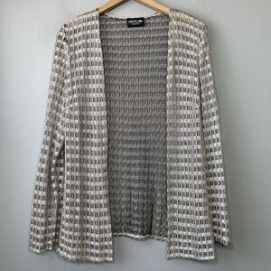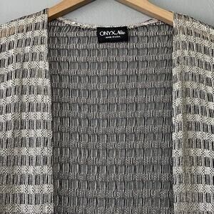 Onyx Nite long sleeve open front Silvery gold open knit mesh cardigan in Excellent pre-owned condition!