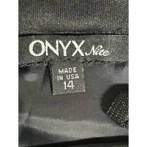The Onyx Nite Women's Black Polka Dot Spaghetti Straps Lined Dress in size 14 is a stylish and whimsygoth-inspired piece perfect for a party or cocktail event. Made from a mesh fabric with a sweetheart neckline and sleeveless design, this knee-length dress features a zip closure and belted waist. The polka dot pattern adds a playful touch to the A-line silhouette, making it a fun and unique choice for summer or spring occasions. Made in the United States in the 2000s, this dress is a great addition to any woman's wardrobe looking to channel a 50s-inspired style.