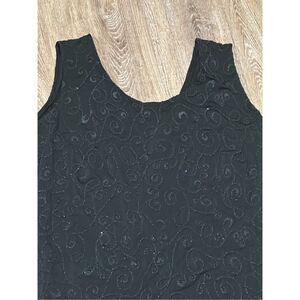 Onyx Nite black jersey sheath stretch dress with beautiful beaded design. Catches the light for shimmer. SZ 20 pics show measurements