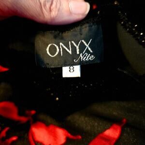 Stunning Onyx Nite velvet maxi dress, perfect for a y2k-inspired look! This dress features a flattering silhouette and subtle sparkles that catch the light beautifully. Ideal for a special occasion or a night out. In excellent condition. Add a touch of vintage glam to your wardrobe with this timeless piece!