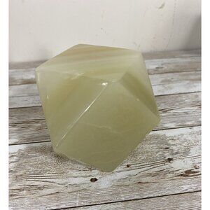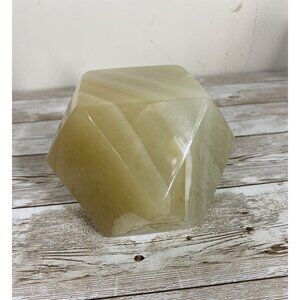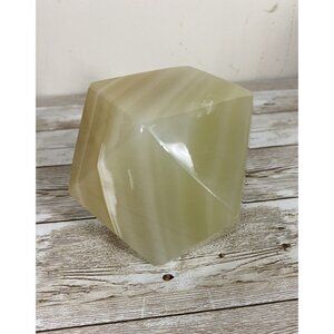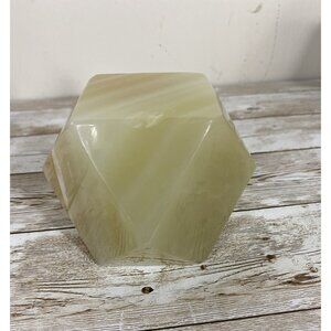 Onyx Paperweight Geometrical Tetradecagon Natural White Cream Brown Marbling Vtg