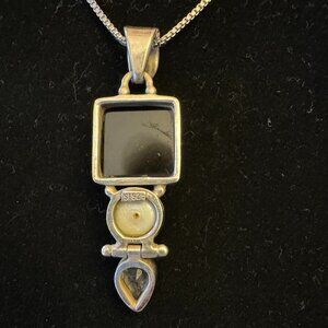 Beautiful onyx, pearl and crystal pendant set in sterling silver (see 925 stamp on back).