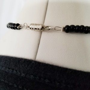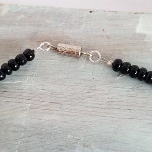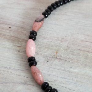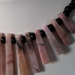 Beautiful handcrafted young girls rose quartz and black onyx BIB necklace.