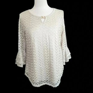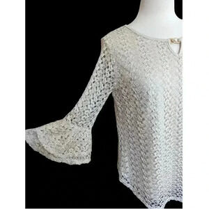 Onyx Tan Lace Blouse With Bell 3/4 Sleeves Size M