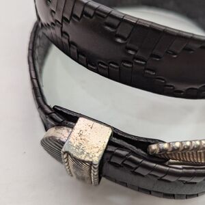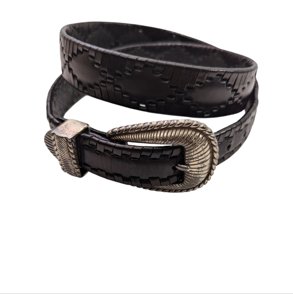 Onyx Women’s Western Black Brown Textured Leather Belt Silver Buckle Size 34