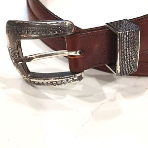 Onyx by Brighton Brown Leather Men's Belt Silver Buckle & Tip Vintage Size 38