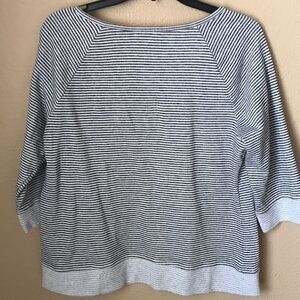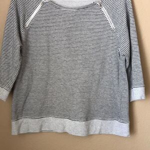 Onyx trendy striped top with zipper accents 3/4 sleeves Comfy and lightweight sweatshirt material Super Cute!!! EUC Size Large