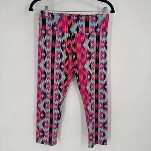 Onzie Aztec Southwestern Tribal Cropped Leggings Colorful Medium Large Pink Blue