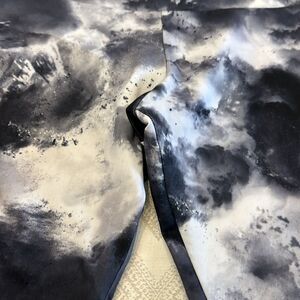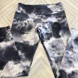 Onzie Black & White Full Length Leggings. Splatter paint like design. Inseam 28.5”. Gently worn. Size M/L.