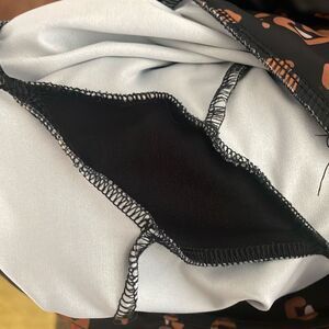 Fabric: Feels like a polyester or nylon and spandex blend. Material tag has faded and is illegible.