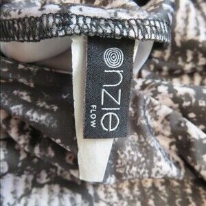 These fun and artsy workout leggings are by Onzie flow. They would be great as loungewear or for low impact exercising like yoga, barre, or walking. Black and white abstract pattern with a diagonal mesh and cut out band along the thighs and ankles. Great activewear or athletic wear bottoms for your next workout! Size small / medium In good condition with minimal signs of wear
