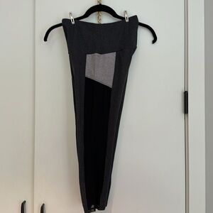 Onzie grey and black paneled capri workout leggings. Like new. Worn once around the house. Too small for me. Small/Medium.
