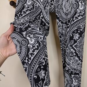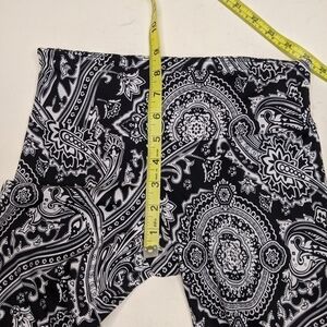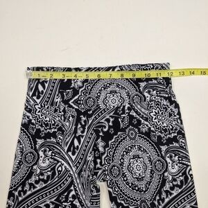 Onzie Mid Rise Skinny Black & White Floral Brocade Yoga Pants Leggings - great pre-owned condition