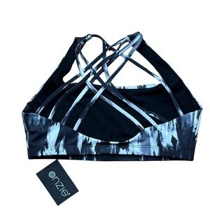 Onzie NWT Hot Yoga Chic Sports Bra in Activated Charcoal Black and Gray M/L