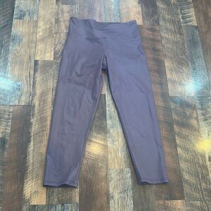 Great condition cracked leggings and a lavender color. These measure 12.5 inches across the waist laying flat and have a rise of 9.5 inches. The inseam measures 21 inches. These are definitely more of a medium size.