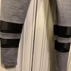 Onzie Womens Athletic Racer Pant Legging Gray Black Mesh Size S/M