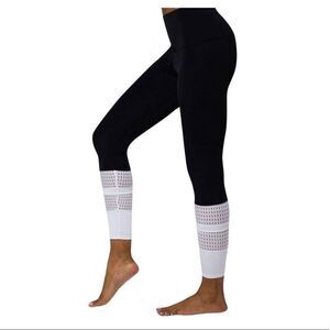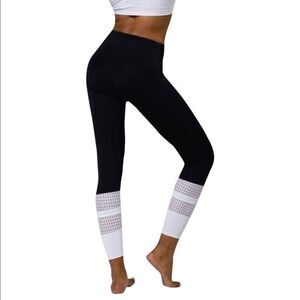 Onzie black and white midi racer leggings small. 7/8 RACER MIDI CAPRIS. These tight stretch leggings feature mesh for breathability, high waist to hold you confortably in and a perfect 7/8 length. Excellent condition see photos for measurements