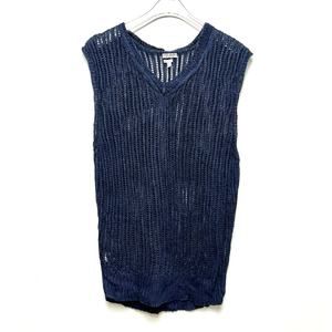 Oobe Brand Pure Linen Open Knit Hugger Vest Navy XL