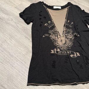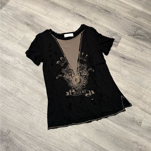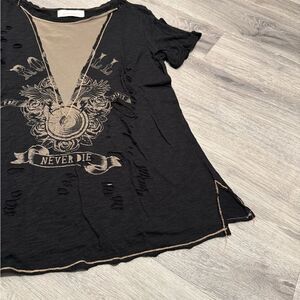 Oober Swank Black Rocker Graphic Women's Top with mesh cleavage