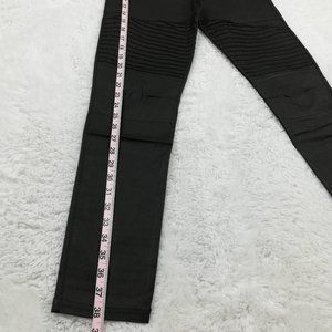 Oober Swank Womens Moto Pants Leggings Black Mid Rise Pull On Stretch L New