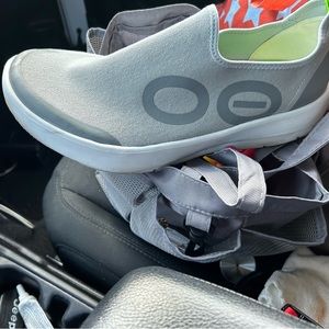 Oofos MEN'S OOMG EEZEE LOW SHOE - WHITE GRAY Size 10