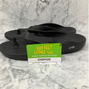 Oofos OOriginal Black Sandals W12 M10 Recovery Footwear Flip Flop P2-57
