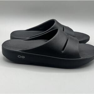Oofos Ooahh Sport Slide Sandals Unisex M7/W9 Solid Black Slip On Recovery