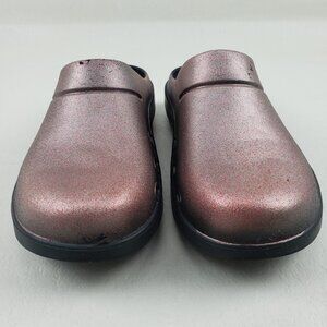 Oofos Oocloog Slip On Clog Womens 10 Red Sparkle Recovery Foam Comfort Mule Shoe