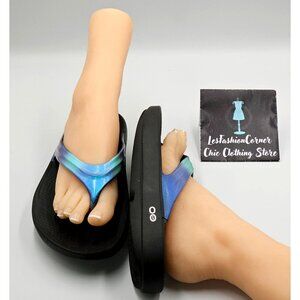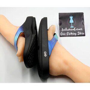 Oofos Women's Iridescent Black & Blue Oolala Luxe Flip Flops Size W10 2831