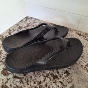 Oofos Black Flip Flops Size w 8 thong style sandals comfort