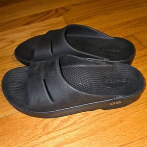 Oofos Black Rubber Slipon Flip Flops Womans Size 6