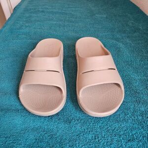 Oofos OOahh slide sandals, made with OOfoam technology, which absorbs 37% more impact than traditional footwear. This can help reduce stress on your feet and joints, making them a comfortable option for everyday wear or recovery after workouts. They also feature a patented footbed design to reduce stress on knees and ankles. The closed-cell foam is machine washable and designed to minimize odor.