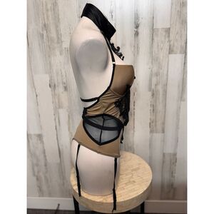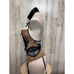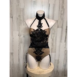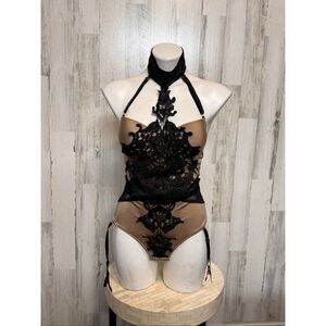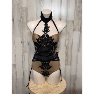 Ooh La La Paris Black Lace Applique Satin Sheer Bodysuit Lingerie Size M
