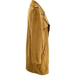 Ookie & LaLa Tan Scuba Suede Open Front Neutral Layer Mid Length Jacket L