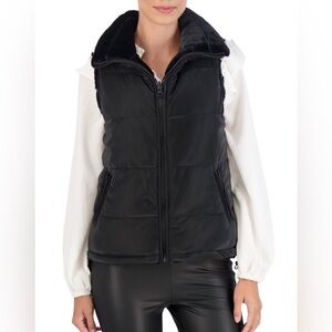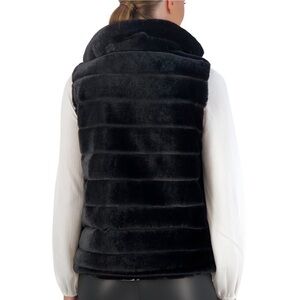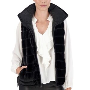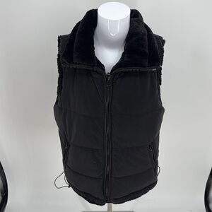 Ookie and Lala Carbon Puffer Vest Reversible to Grooved Faux Fur Size M NEW