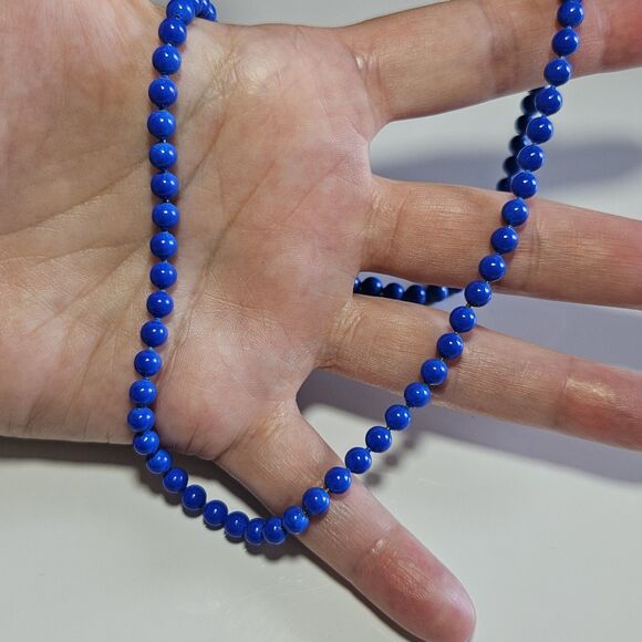 Oops A Daisy Bright Blue Beaded Necklace 18" Spring Ring Clasp