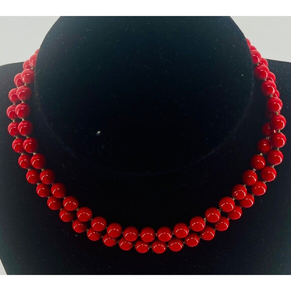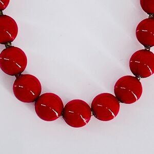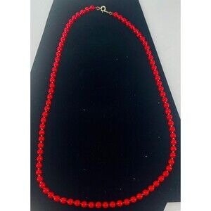 Oops A Daisy Signed Red Enamel Necklace Ball Chain Vintage Beads 25" Strand