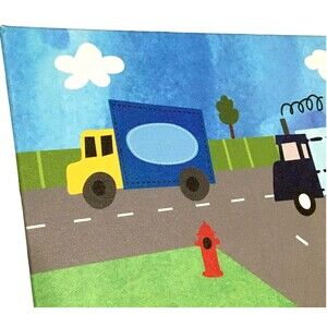Oopsy Daisy Too Fine Art Canvas Print Transportation Busy Roads with Cars & Trucks for Kids Boys. Sold at Target, now discontinued and unavailable online. New with tags. Measures approximately 21" x 21". Please see pictures.