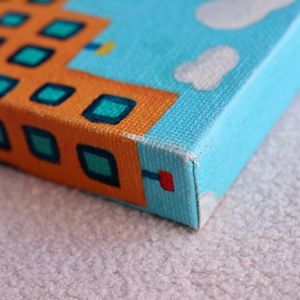 Canvas artwork is hand-stretched over a 1 1/2" deep all-natural wood frame and wrapped around the sides gallery style, providing a finished decorative edge.