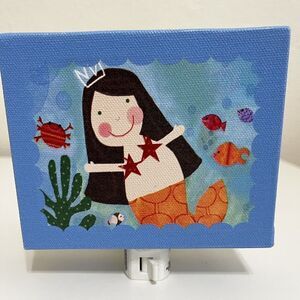 Oopsy Daisy Mermaid Canvas Night Light. Adorable little mermaid night light. We used this in my daughter's room for several year, works great, only issues that I can find are some wear to the edges where the canvas has been folded - please see the pictures.