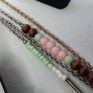 Wood, metal, acrylic and seed beads