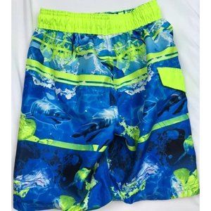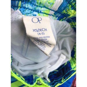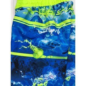 Op Boys Size 4-5 XS Swim Trunks Blue Neon Yellow Sharks Jellyfish Ocean