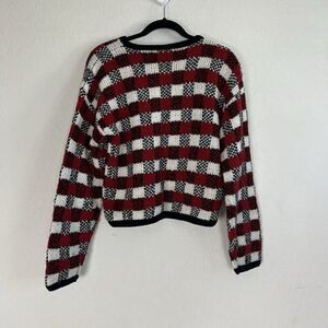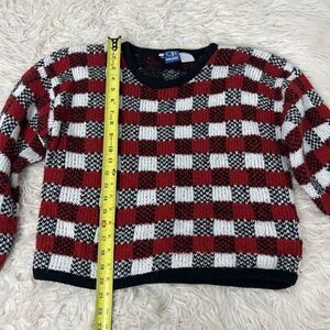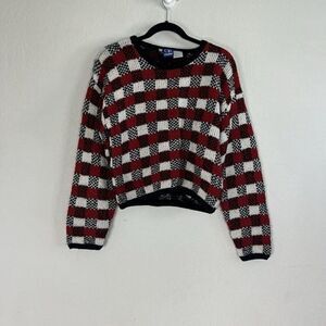 Op Ocean Pacific Vintage 80s Red Checkered Acrylic Cropped Sweater Womens Large