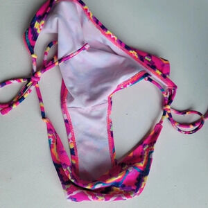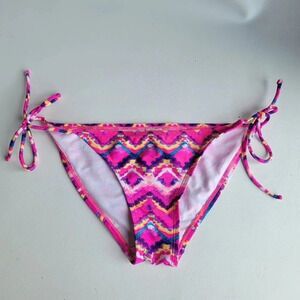 Op Women's Bikini Bottom Hot Pink Watercolor Large (11-13) Swim Side Tie
